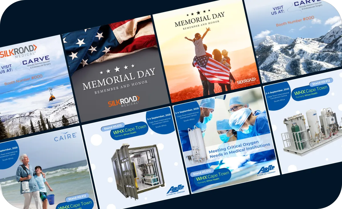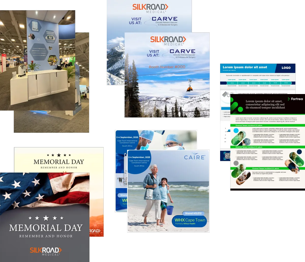 Booth & Event Design: We design booth graphics and compliant messaging that capture attention and fuel qualified conversations.